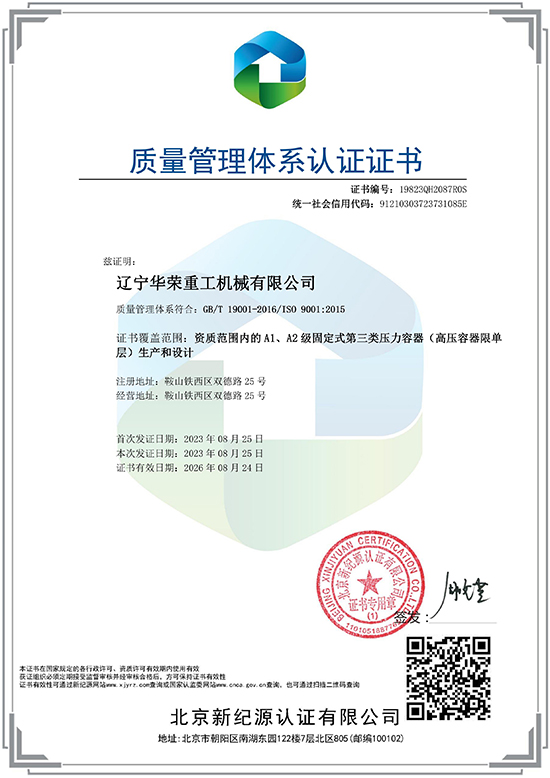 質量管理體系認證證書
