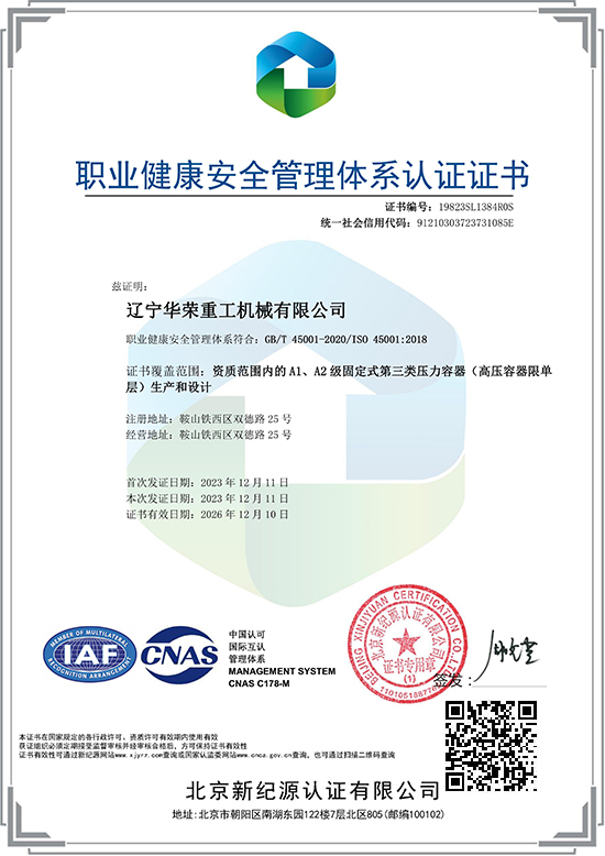 職業(yè)健康安全管理體系認(rèn)證證書(shū)